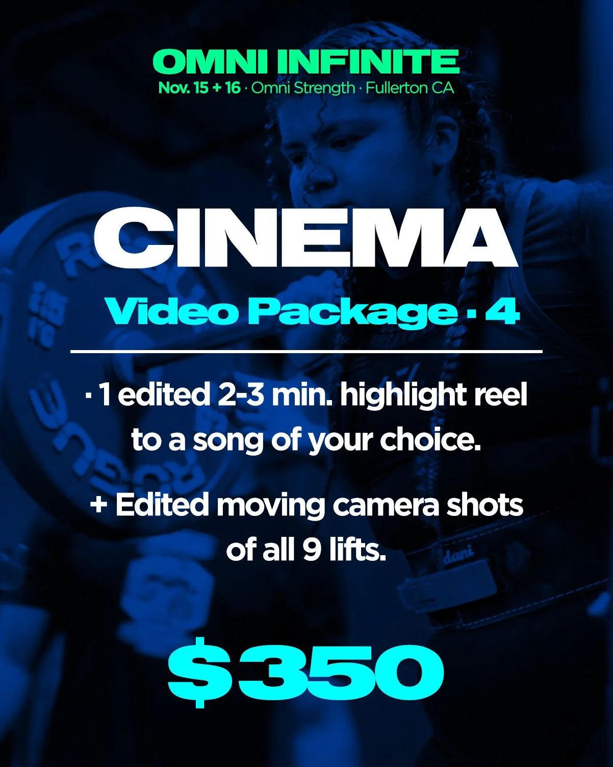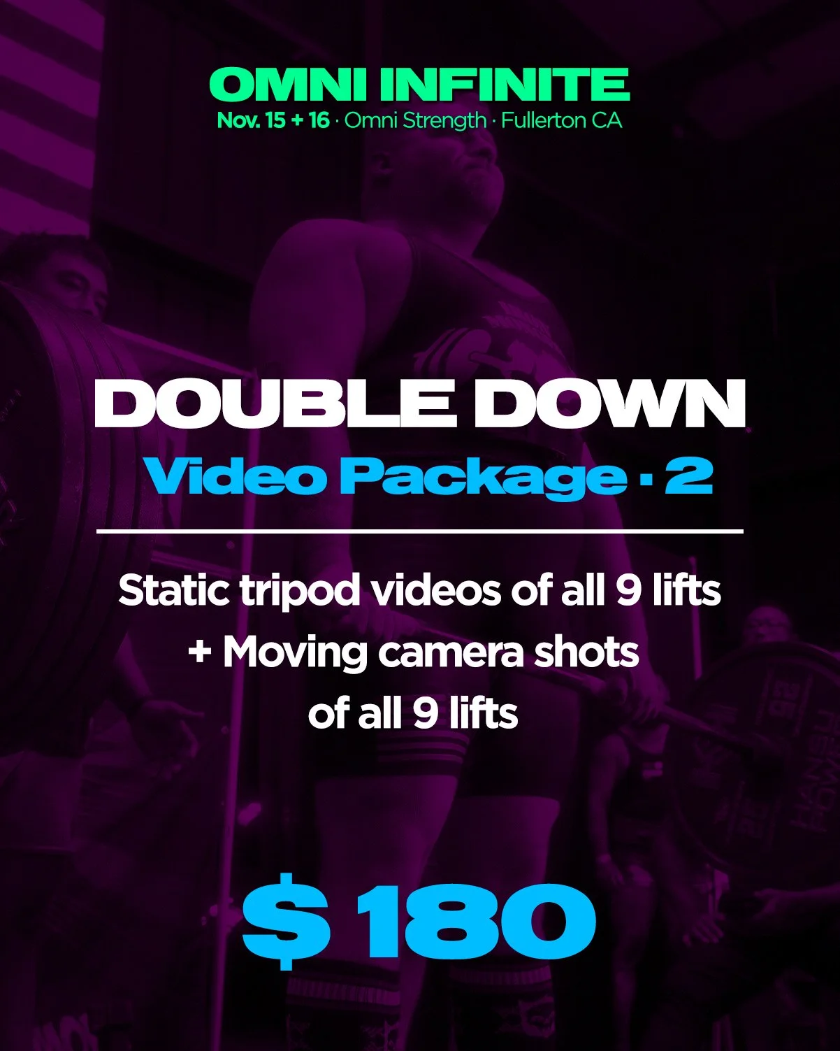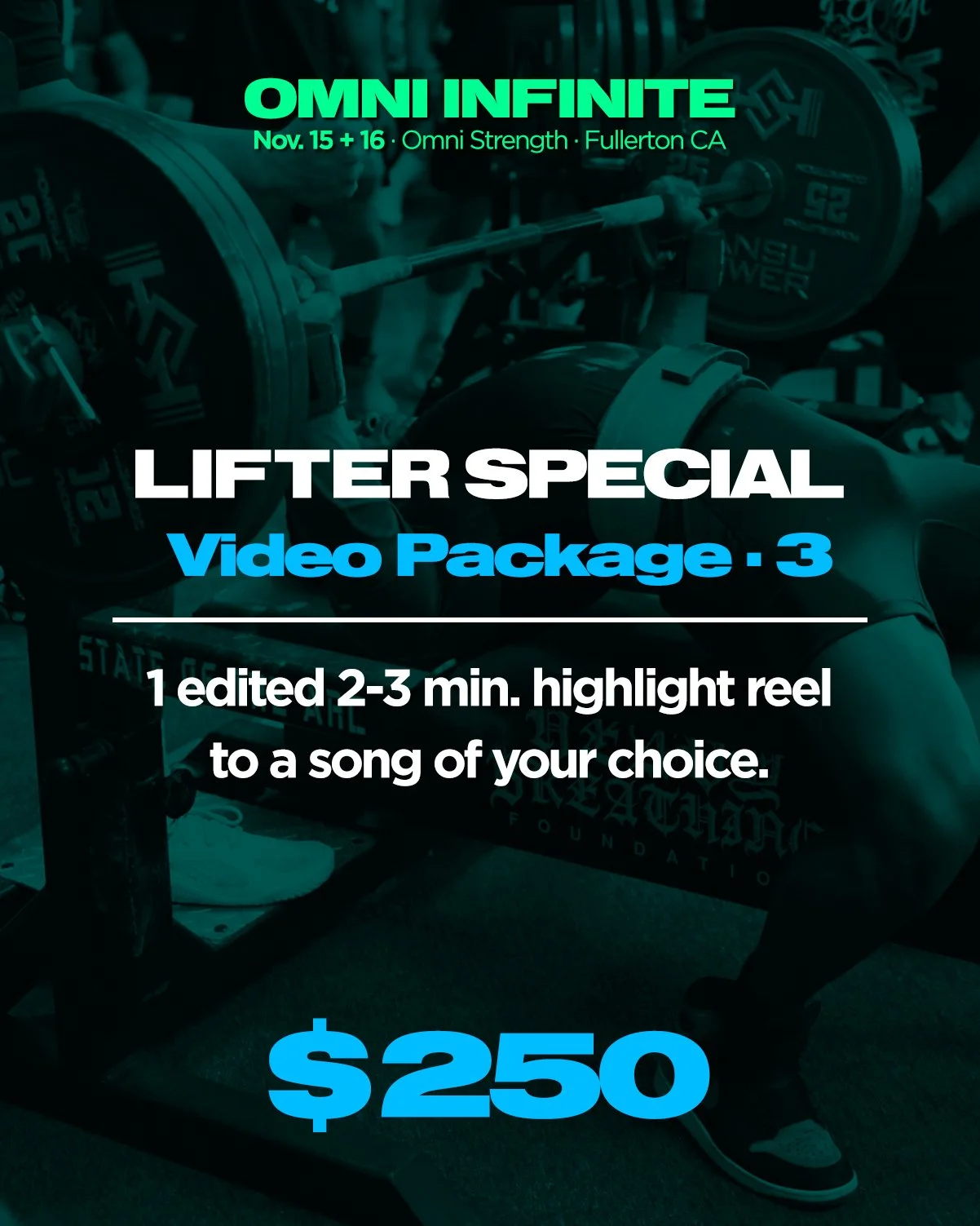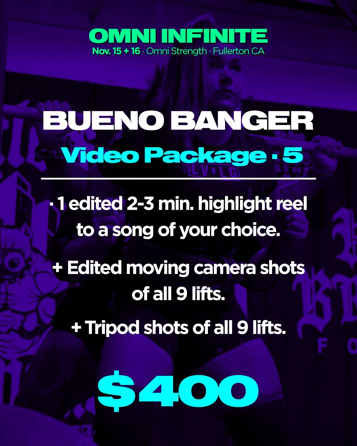 Examples of powerlifting meet video work can be seen on the Bueno Creative instagram: https://www.instagram.com/bueno.creative/